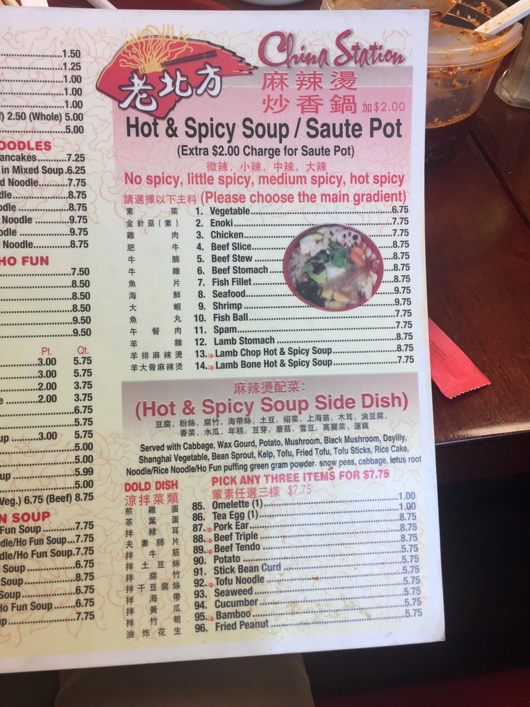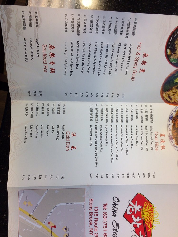 "China Station" in Stony Brook, NY, offers a diverse menu with many vegetarian options, catering to various tastes. The Chef's Menu includes delectable dishes like Stir Fried Beef and Green Pepper and Fish Fillet in Spicy Soup, showcasing authentic Chinese flavors. Customers praise the restaurant for its generous portion sizes, reasonable prices, and flavorful meals. The ambiance may lack in aesthetics, but the authentic feel and piping hot dishes make up for it. The Saute Mai Fun options like Beef Saute Mai Fun and Seafood Saute Mai Fun are highly recommended for those looking for a satisfying meal. The restaurant also caters to large groups with their All In One Hot pot option, making it a great spot for gatherings. Overall, China Station stands out for its delicious and filling Chinese cuisine, making it a go-to spot near Stony Brook Campus.